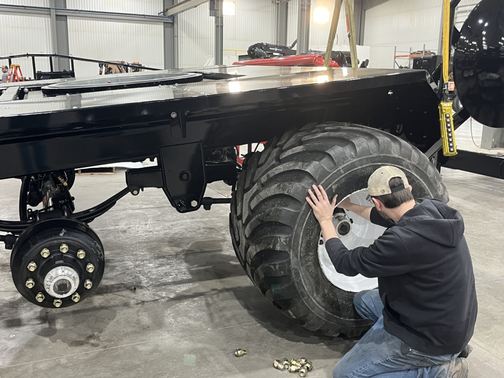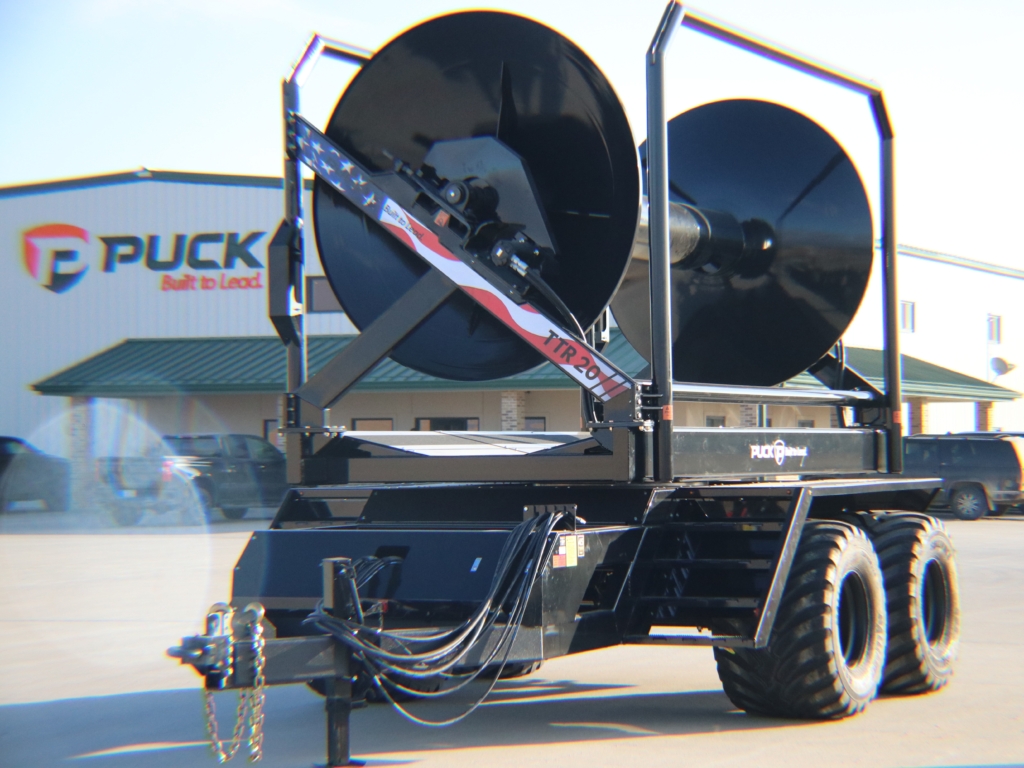 Jeremy Puck, CEO, remembers the first TTR 20 and its manufacturing. “This was an evolution going from the HC 16 into a hose cart that’s bigger, that can carry more hose,” said Jeremy. “Some design points we had to overcome included road width, transportation length, and how to get through the field. The design led us to a tandem axle with four floatation tires on it to help get us through the field.” Additionally, Puck took inspiration from a Kinze planter to turn the reel sideways. This allowed the hose reel to be narrow on roads while still providing width in the fields. The turned reel can also be helpful when laying hose in a ditch along the side of the road, deploying the hose from the side.